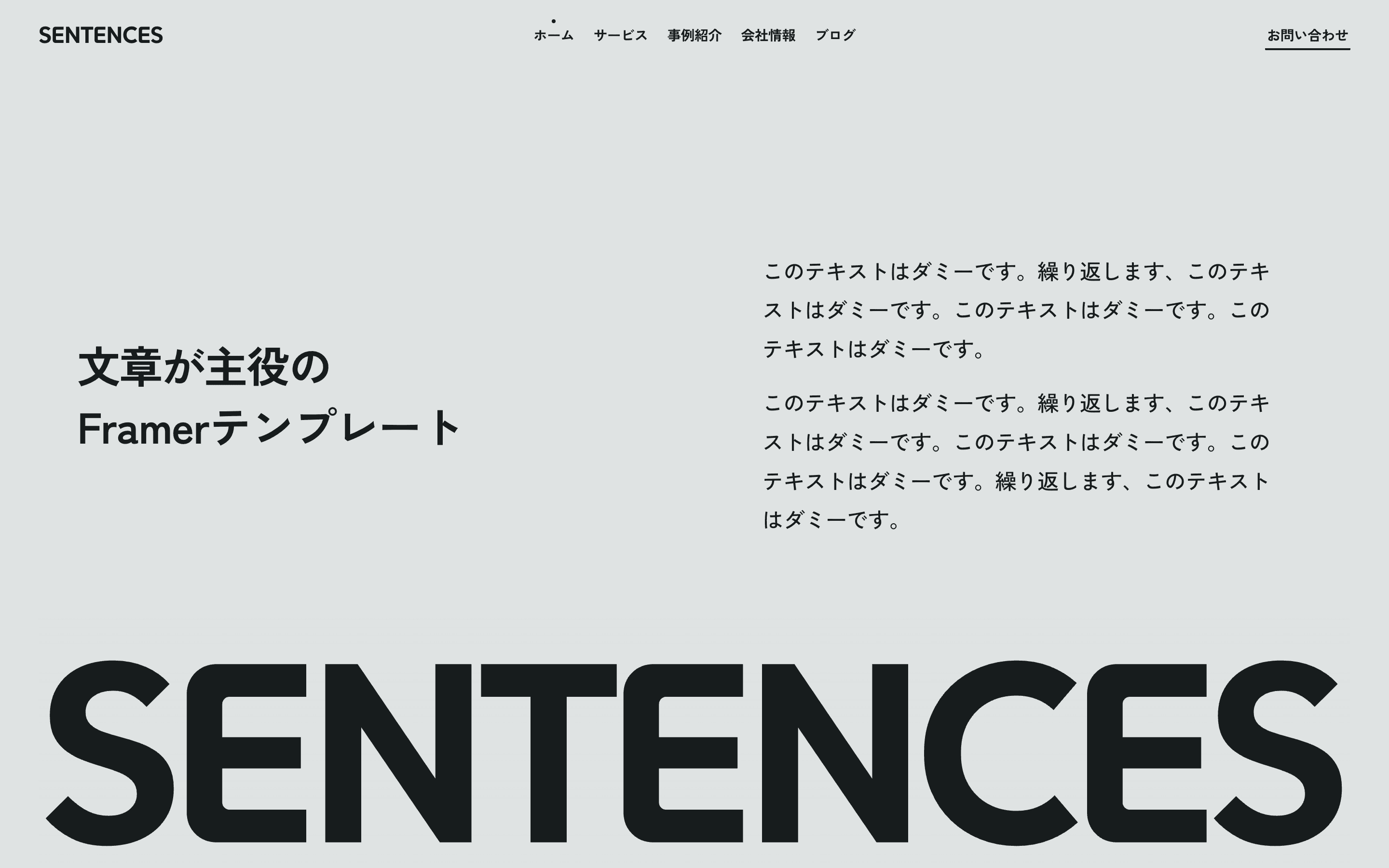 写真を使用せず、テキストを中心としたテンプレート。デザインもシンプルで、必要な情報を見つけやすく、コンテンツが読みやすいのが特徴です。また、一般的なコーポレートサイトに必要な情報が網羅され、トップページから各コンテンツにアクセスしやすい設計になっています。