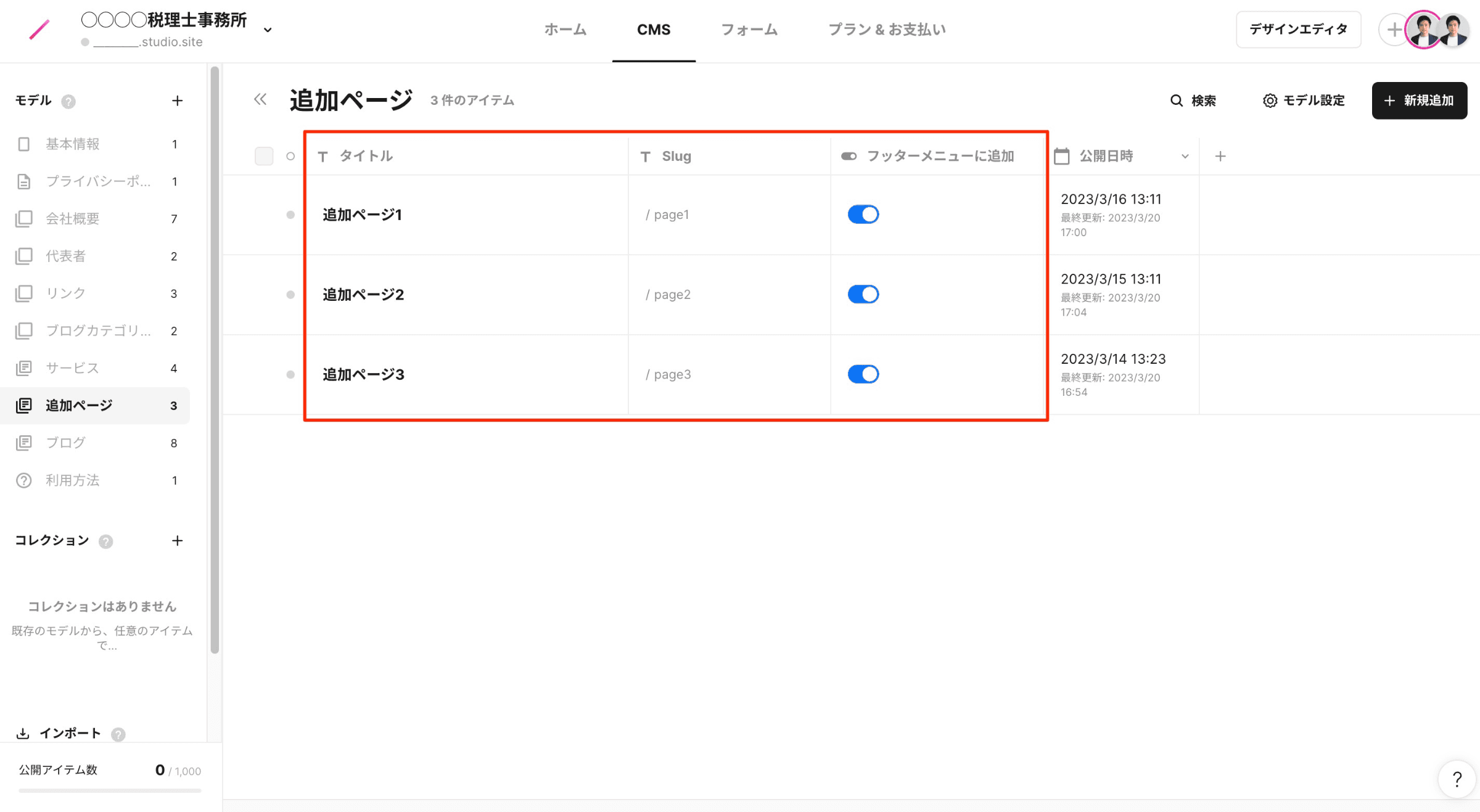 CMS > 追加ページ ※オプション