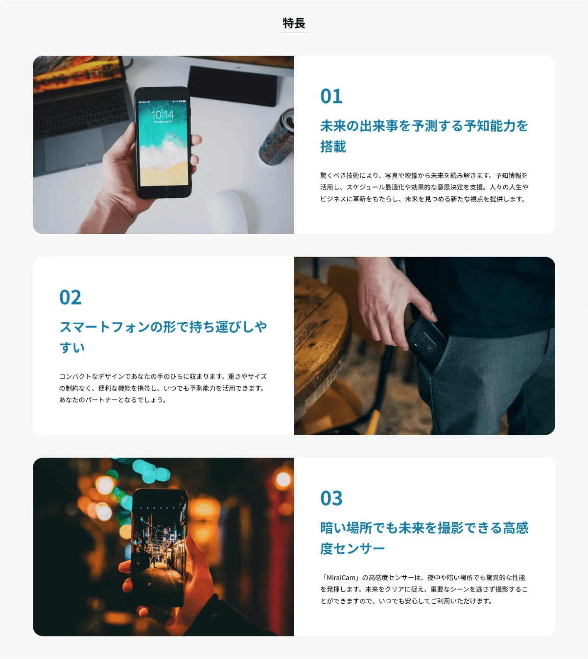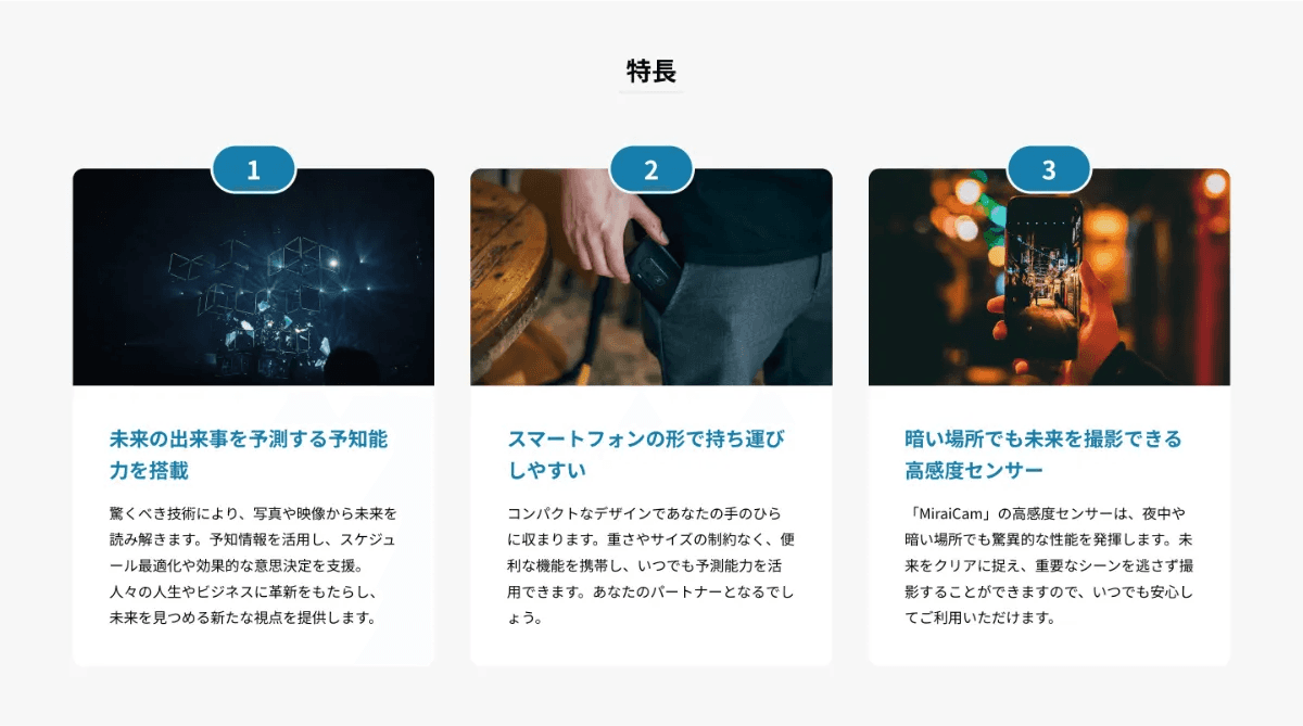 一般的なランディングページに必要な要素を網羅。さまざまな業種でご活用いただけます。